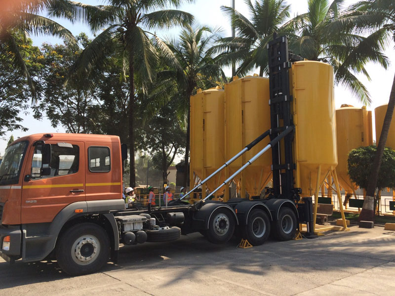 In collaboration with Velsycon (Germany) we now offer “Interchangeable Mini Silo with Combilifts”. It's an Innovative delivery concept where the product is delivered in Small Silos to The Client Locations. A New-age solution that saves cost of of Bags, Bagging, Labour, Godowns, etc., also improves efficiency and eliminates air pollution.